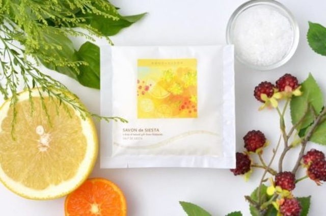 敏感肌の方のための石鹸専門店『SAVON de SIETSA』さんのバスソルトです。 ホッカイドウモミから抽出した香り成分を配合した森林の香り。 ミネラルを含んだ天日塩(海塩)のバスソルトは、お風呂上がりのお肌をすべすべに。 体の芯からじっくり温まります。 香り:爽やかな森林の香り 内容量:40g(1個) 原料 海塩、トドマツ葉油、オレンジ果皮油、ベルガモット果皮油(※)、セイヨウネズ果実油、セイヨウハッカ油、ユーカリ葉油 ※光毒性のないものを使用しています。 北海道素材 下川町産 トドマツ油 ミネラルやマグネシウムが豊富な天然塩が体の緊張をほぐし、リラックス効果が期待できます。また、熱を逃げにくくし発汗を高めてくれます。 さらに炭酸水素ナトリウム(重曹)とハチミツがお肌をしっとりすべすべに。