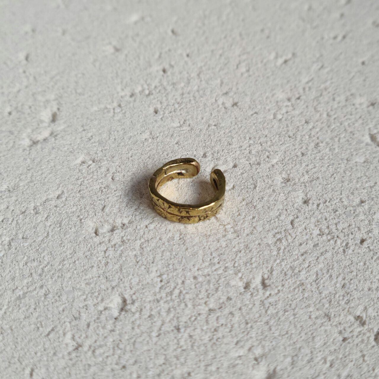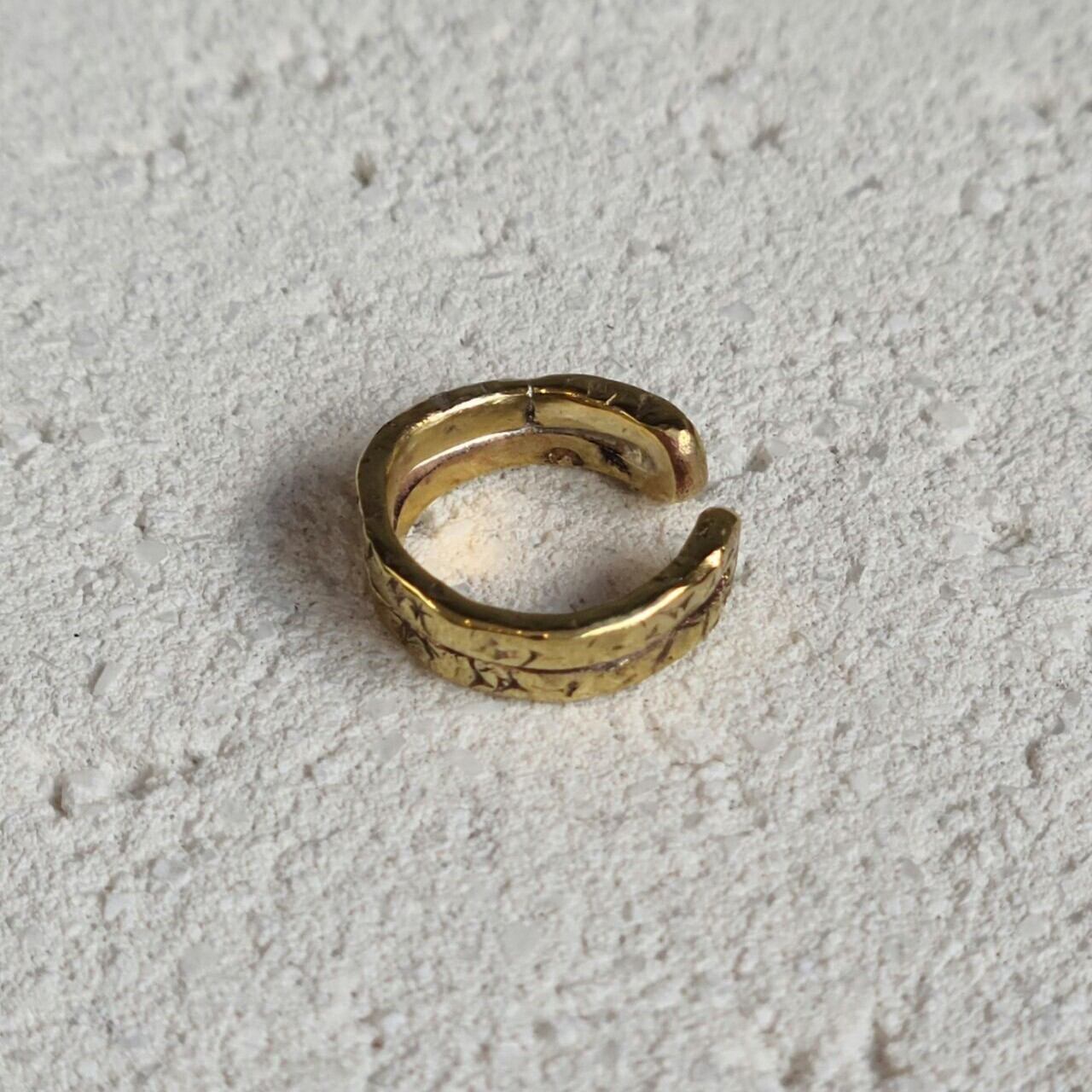 細いイヤーカフを2つ重ねて付けているような真鍮のイヤーカフです。