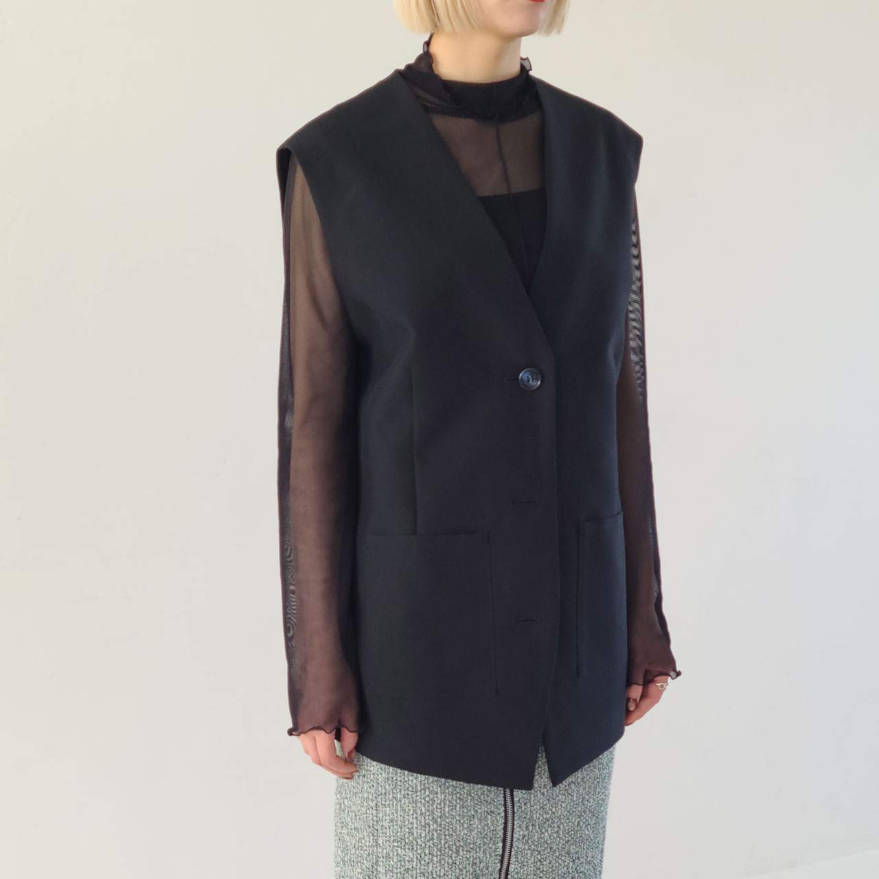 撥水や防汚加工をほどこした機能性素材を使用したベストです。
