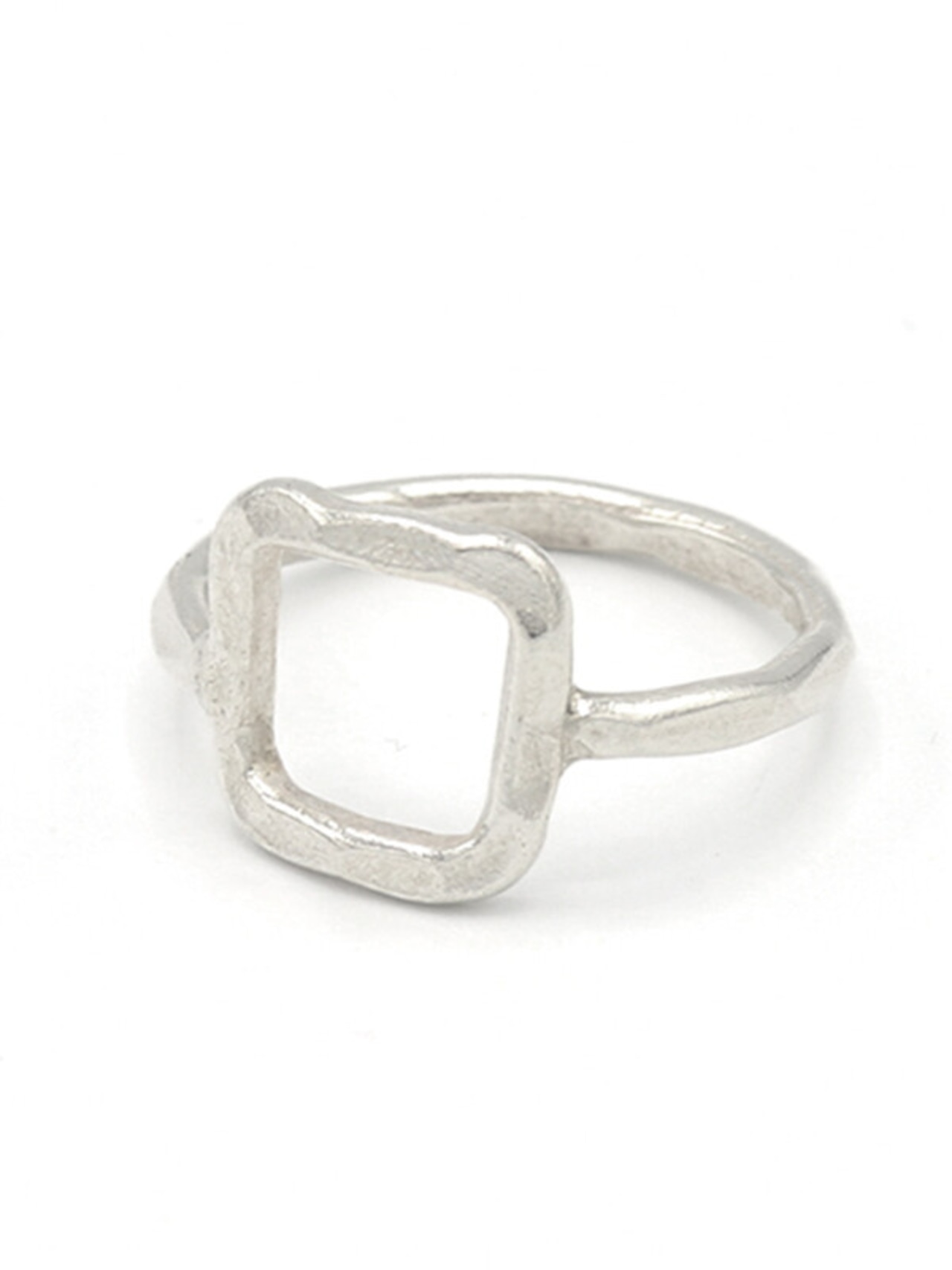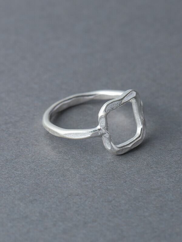 シンプルなスクエアモチーフが洗練された雰囲気のシルバーリング。