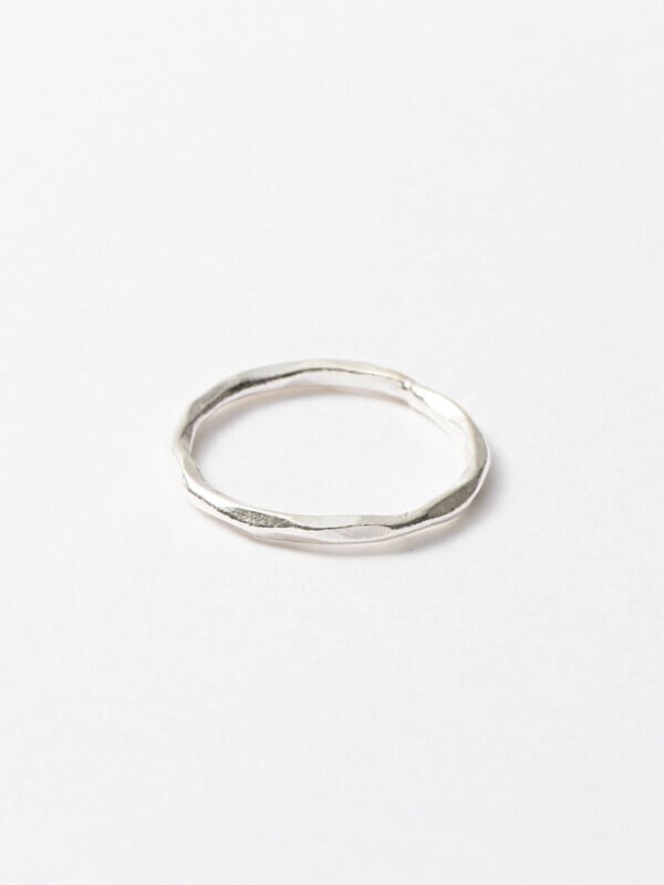 細いリングに槌目を施した、シンプルながらも存在感のあるデザインのシルバーリング。