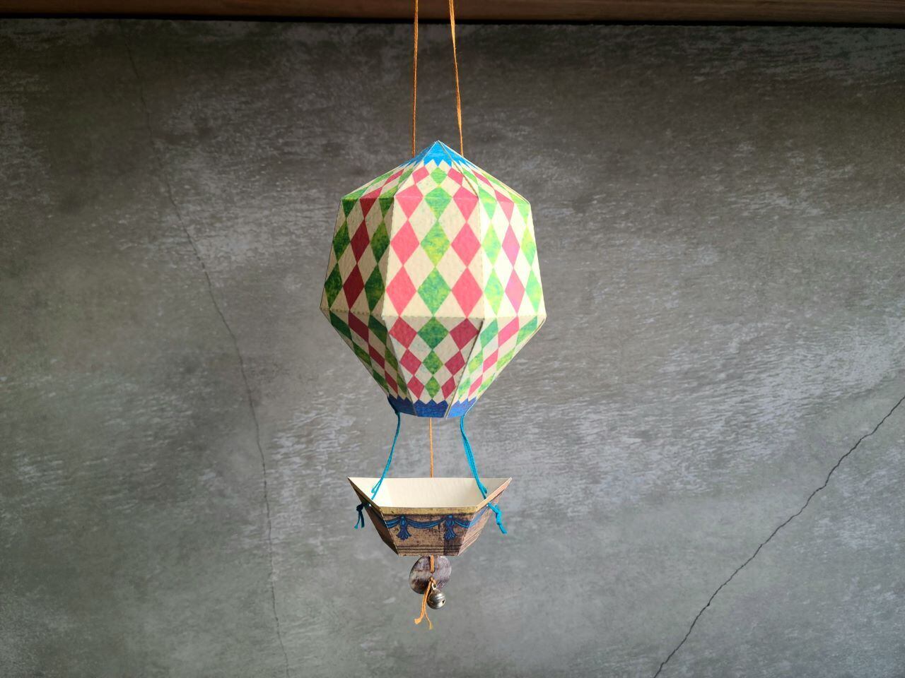 また、紐の下に飾りを付けることもでき、飾りの重さを調整することで、気球が留まる高さを調節することができます。
